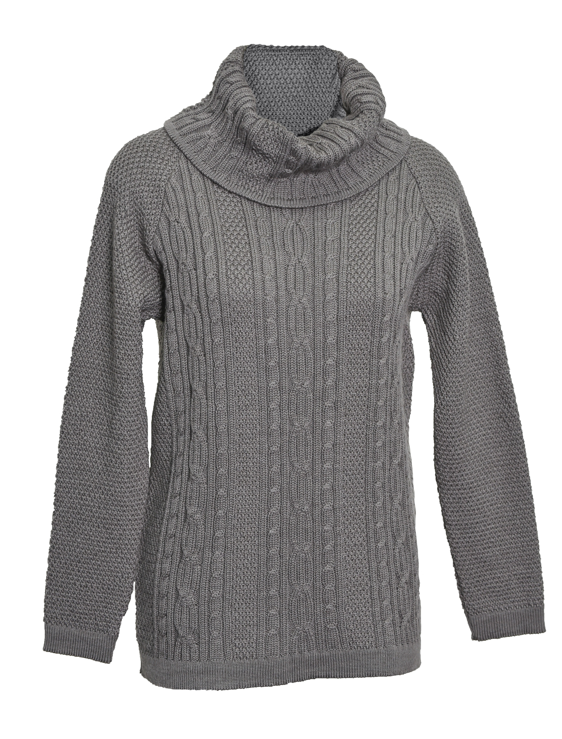 100% Fine merino wool Chunky cable knit cowl neck jumper