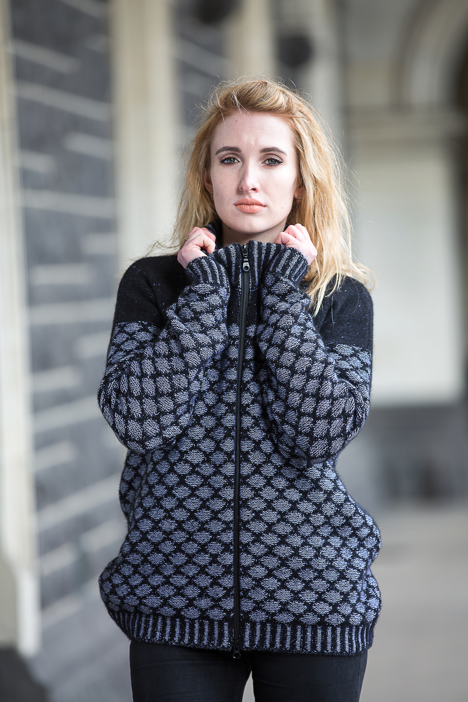 Zip through jacquard texture jacket with contrast bands and shoulder
